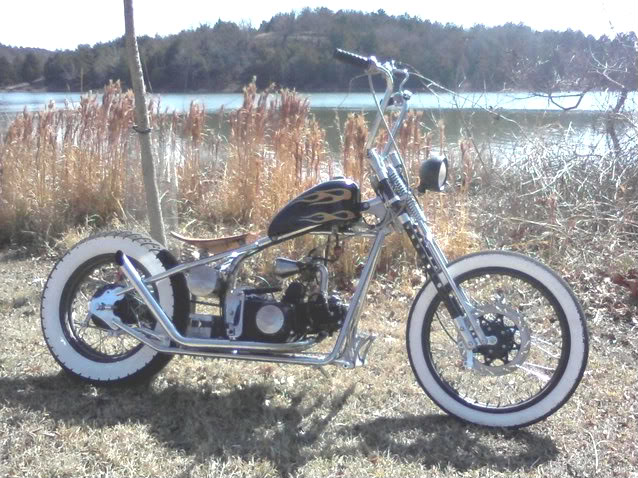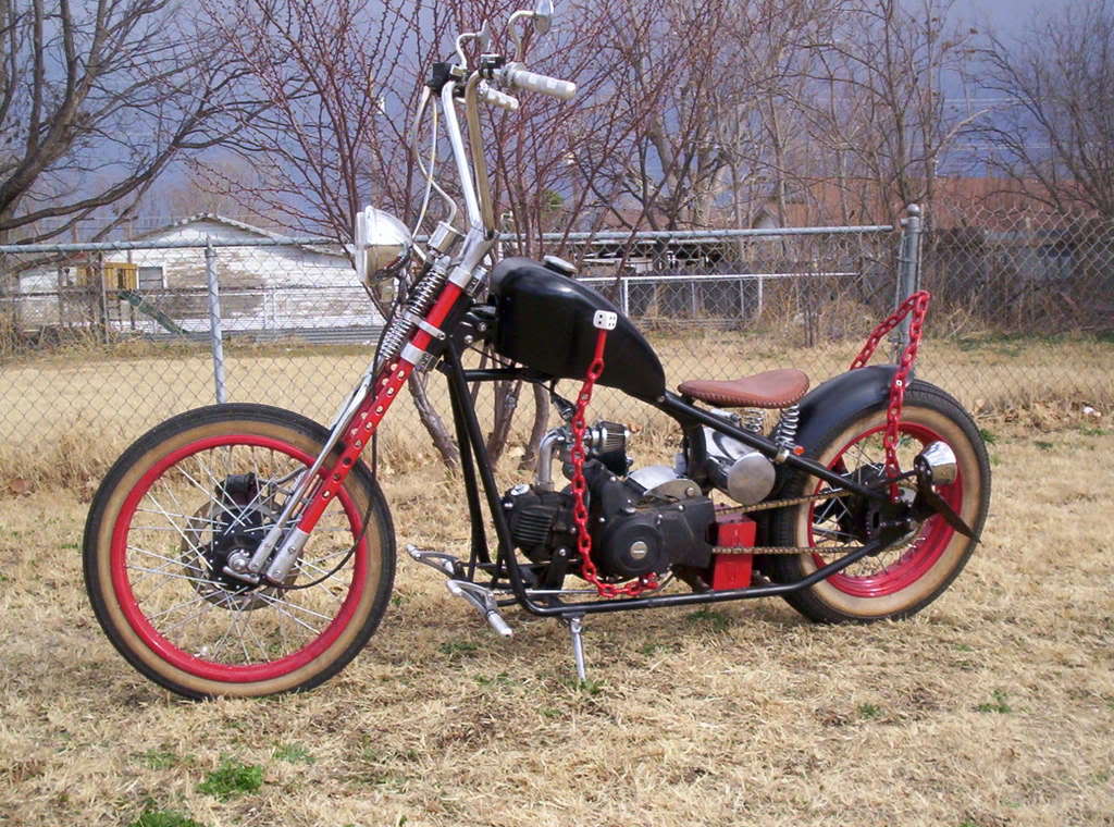 For your safety and the longevity of your Knock I would strongly recommend upgrading your stock Springer fork tubes to my thicker wall chrome molly's. You have a choice of lengths form stock to a max length of what ever you can handle going down the road. My kit comes with two new chrome molly tubes and all stainless steel hard ware for you to install.The tubes come in a bare finish ready for you to PPP them. (Paint, powder coat or plate)